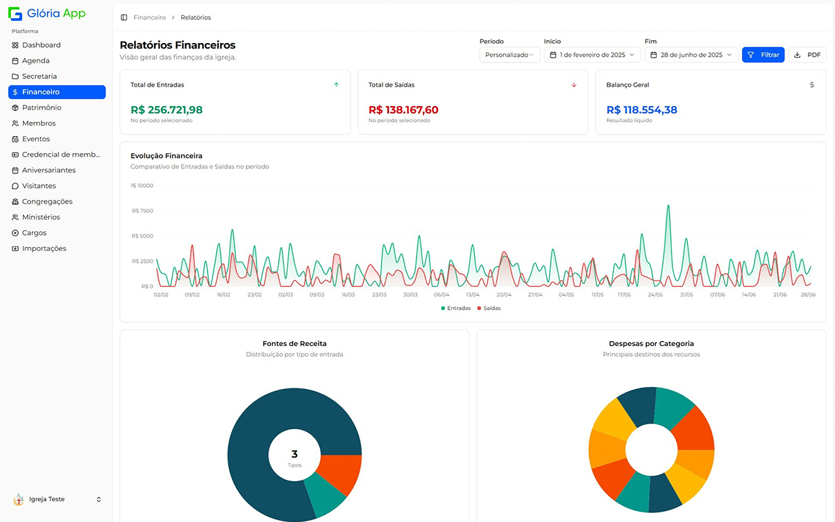 Tenha total controle das finanças da sua igreja com organização, transparência e segurança.